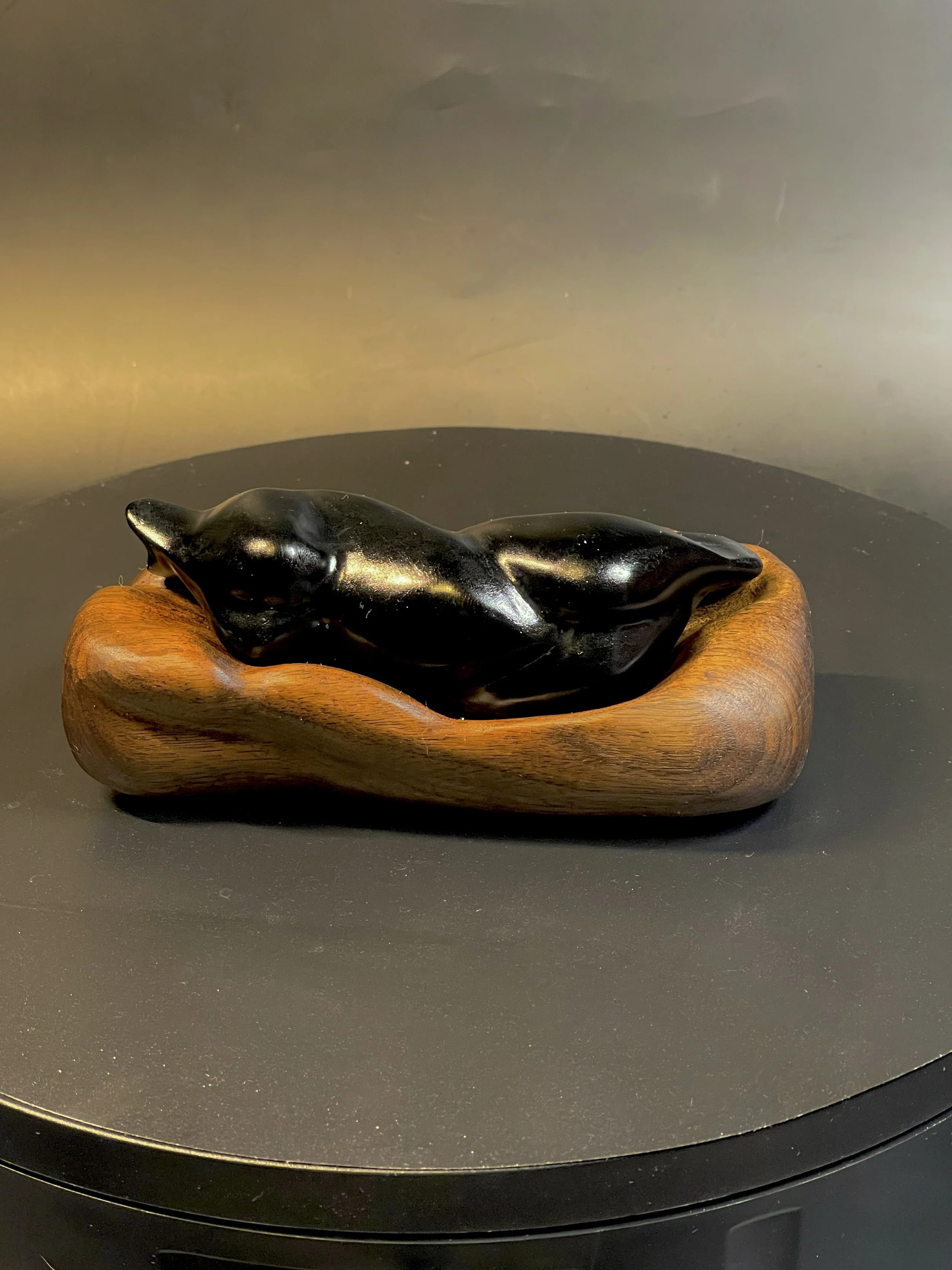 "Perfectly Held" 2024 6"x2" Stone( Chlorite) and Wood (Walnut)