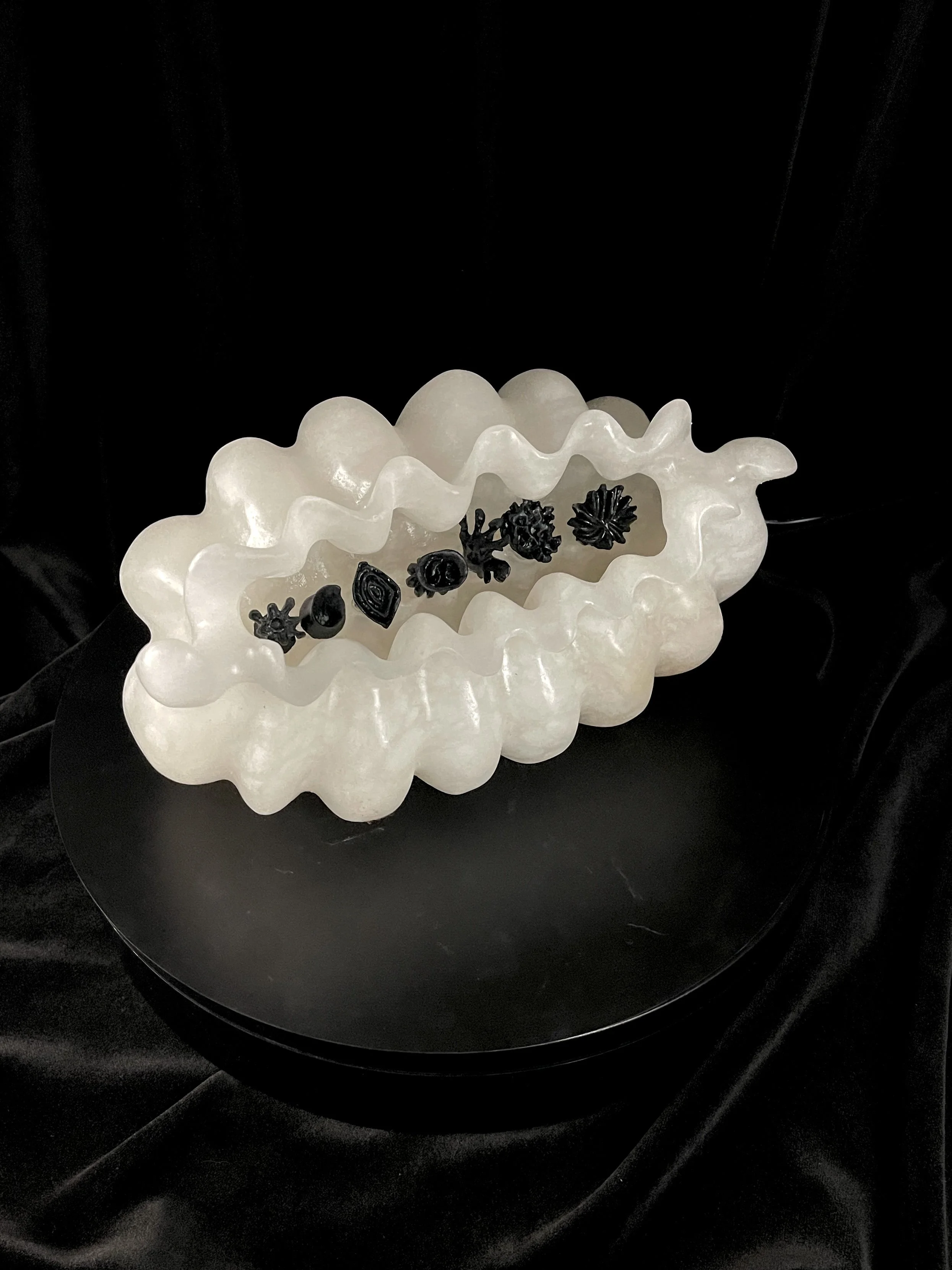 "Roam" 2024 10" x 11" x 3" Stone (alabaster)